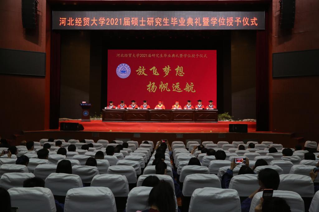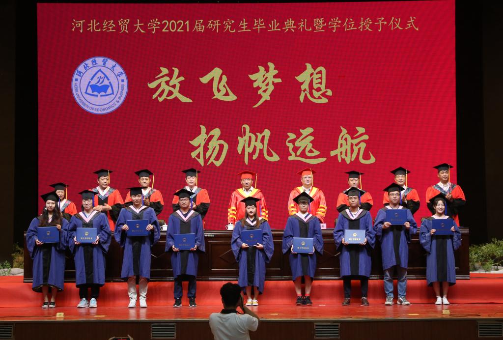 6月8日下午,我校2021届硕士研究生毕业典礼暨学位授予仪式在校礼堂(主会场)举行,会议中心(分会场)通过网络同步直播。校领导董兆伟、刘兵、刘建平、武义青、杨金田、高晓峰、张秀山、程瑞芳出席,和志强主持典礼。