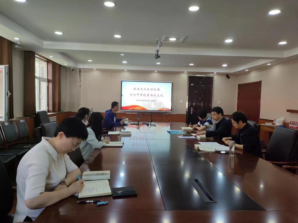 学院办公室周广军同志以“推进文化自信自强,传承中华优秀传统文化”为主题讲授了党课。党课简要介绍了文化的概念溯源、中化文化文明史、中华优秀传统文化分类,重点结合党的二十大报告提出的“推进文化自信自强,铸就社会主义文化新辉煌”,从文化在全面建设社会主义现代化国家地位和作用、坚定文化自信的底气,增强中华文明传播力影响力、推进实现文化自强等方面进行了解读,强调在新的历史起点上,要坚持把马克思主义基本原理同中国具体实际相结合、同中华优秀传统文化相结合,结合新的时代条件传承和弘扬中华优秀传统文化。